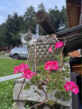 We are a Dutch/ Danish family living in a “baita” (mountain hut) in the Adamello-Brenta Nature Park, deep in the Italian Alps. We are located between Passo Tonale and Ponte di Legno. The Nature is amazing, and many hiking and mountain biking routes come past our Baita. We have 2 kids ( born 2016 and 2018). They go to the local school. We have 2 cats and a dog which lives in and around our house. ( the tiny-house, where we host people, is animal free). We eat mainly Vegan and organic food, but feel free to bring in additional food if you need to. Our baita is fully off the grid, solar powered, with water from a nearby stream. We cannot host smokers.