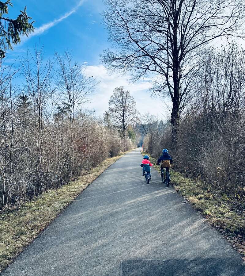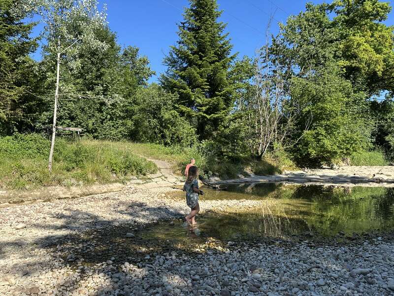 We love spending time in the mountains and often go to Graubünden (a two-hour drive far away) and stay for a few days or a weekend, usually to Arosa. There, we're enjoing hiking, pedal boating, swimming in summertimes, walk the themed trails, feeding the squirrels, or visit the bear park or the rope park and the wonderful Swiss mountain scenery.