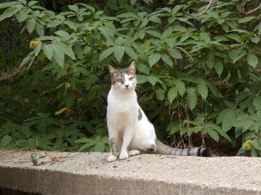 Mouschka was recued as a kitten and she grew up here with us in marocco. She is very friendly and loves to sleep under the blanket with you, she will put her head on the pillow too. When its cold she likes to stay in bed hahaha but otherwise she is enjoiying the outside. She has the dogs under control.