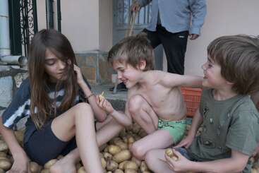 Alkis and Orpheas are 7 years old, full of energy. They also begin to read and like it. Alkis likes cooking and recently is trying to make a lot of different pies and sweets. Orpheas is a real nature boy, enjoy gathering fruits and plants in the garden and in nature. In general the three of them likes nature, and climb on every tree they see.