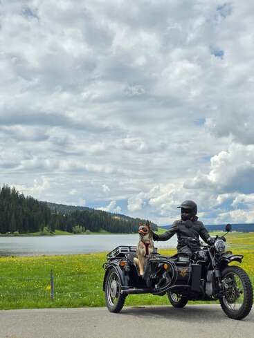 Flexible: alone on a motorcycle or with a van, dog, and motorcycle/sidecar