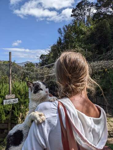 Jan enjoys being surrounded by nature and making friends with the dogs and cats we met during our travel experience.