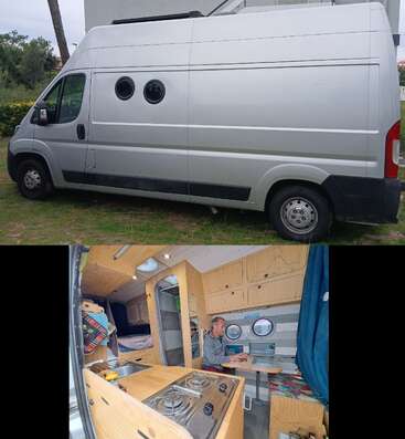 Con mi compañera Edwige, y después de 3 años de viaje por América Latina con nuestras mochilas, ahora pensamos en recorrer Europa en nuestra furgoneta acondicionada, con un pasajero adicional, nuestra perrita podenca Lokiz, que es muy sociable con los otros perros, gatos y niños.