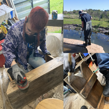 •En nuestro tercer WorkAway, quitamos y reemplazamos el barniz de 27 bancos de madera, y luego retiramos la maleza acumulada y ayudamos a limpiar la piscina natural para embellecer la propiedad.