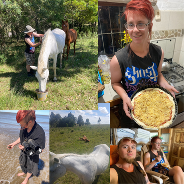 SJ: I love plants of all kinds and I have a green thumb, I have a lot of gardening experience, both with my family as a child, and in my own apartment spaces as an adult. I'm also an avid cook and baker! I enjoy most all animals, but I have a soft spot for cats and horses. We both grew up with animals, and I had cats, dogs, and rats. I am a creative person who loves to dabble, with pottery being the one thing I'd really love to try! Overall people would describe me as friendly, warm, and helpful, yet results driven. I love to explore new ways of doing things, and Uruguayan eco projects and mud/clay house building is a growing interest of mine!