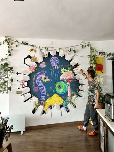 I am artist, I do murals, draw, make tattos, play guitar and do some yoga and sport.