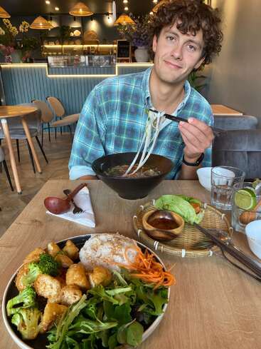 We’re both easy-going, curious, respectful and love trying new things. Tom is happiest outdoors, hiking, cycling, swimming, or tinkering on DIY projects (he once converted his own campervan from scratch!). Alie is more creative, she loves painting, cooking and baking (especially vegan treats), and getting lost in a good manga. Together we both enjoy cooking, exploring new places, and sharing stories over a meal.