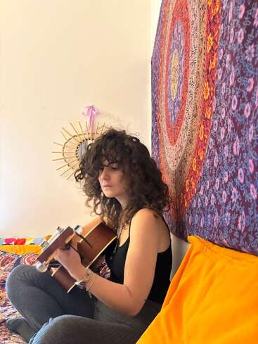 When Veronica plays, I sing. Sometimes I performed for improvised jam sessions with some friends. What I love best is when I'm surrounded by nature, so I happened to perform in parks (so fun!). I grow up in the countryside, and always enjoyed a wide variety of landscapes to take my breath away. It is when I reach the peak of a mountain after a trekking or when I seat and write facing the sea.