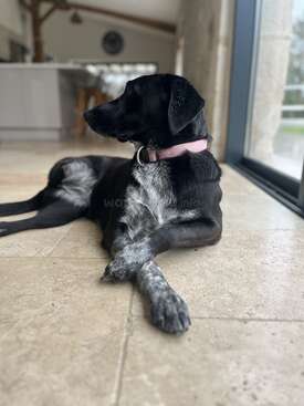 SHADOW - our energetic young rescue dog, has 3 legs (missing hind leg) but she’s not only very mobile, she's super fast when she runs and loves her daily walks! She goes off the lead and going fast is easier for her. We have off-road walks straight from the house! She has a pretty good recall and is always improving in her training. I always have her on the lead when on or crossing the road. As long as she's had a good walk she can be left for a few hours if you go out and about visiting places. In the day she likes to hang around with you, also can be a good guard dog if she sees anyone around. The garden is fenced so she cannot get out of the grounds. She is happy and relaxed after her walk; either two short walks of a minimum of 20-30mins or even up to 2-3hrs (10-15km). She sleeps peacefully and doesn't disturb you at night.