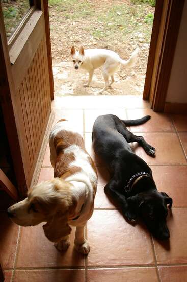 Both Jorge and Laura feel very confortable with animals: we love all of them! (dogs, cats, sheeps, horses, birds, chickens....). We are patient, sensitive and try to create a calm atmosphere.