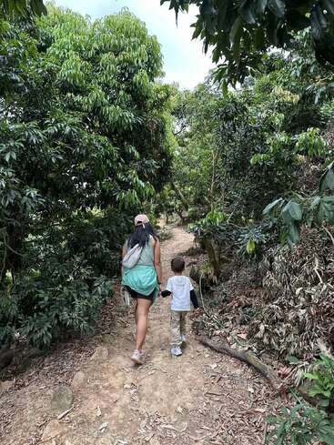 The farm is fully designed around sustainable living — there’s a food forest, solar power, a water-collection system, a dry toilet… you can really feel how much heart Roser and the previous volunteers have poured into building this place.